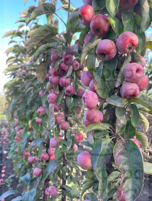 Яблоня колоновидная Аполло - осеннего срока созревания (созревает в середине сентября). Яблоня колоновидная небольшое декоративное дерево с колоновидной формой кроны, высота до 3-4 м. с тёмно-зёлеными листьями и крупными тёмно-розовыми цветками и небольшими красными плодами. Плоды красно-пурпурные с сизоватым налетом, ароматные, вкусные. Данный сорт используется в композициях с деревьями и кустарниками, изгородях, а также в тесных и узких местах. Зимостойкость дерева высокая.