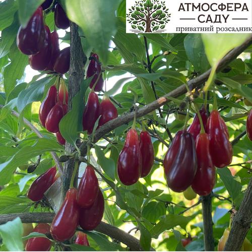 Кизил Элегантный - раннего срока созревания (созревает в конце июля-начале августа). В начале созревания плоды имеют тёмно-бордовый (почти чёрный) окрас. Мякоть тёмно-красная, плотная, нежная, сочная, очень ароматная, гармоничного вкуса, очень высоких вкусовых качеств (считается одним из самых вкуснейших сортов кизила). Плоды массой 4,5-5,0 г. Также ягоды длительное время висят на дереве и не осыпаются. Косточка небольшого размера. Данный сорт обладает очень высокой зимостойкостью, засухоустойчивый и устойчив к болезням. Плоды выглядят очень привлекательно и отлично переносят транспортабельность.